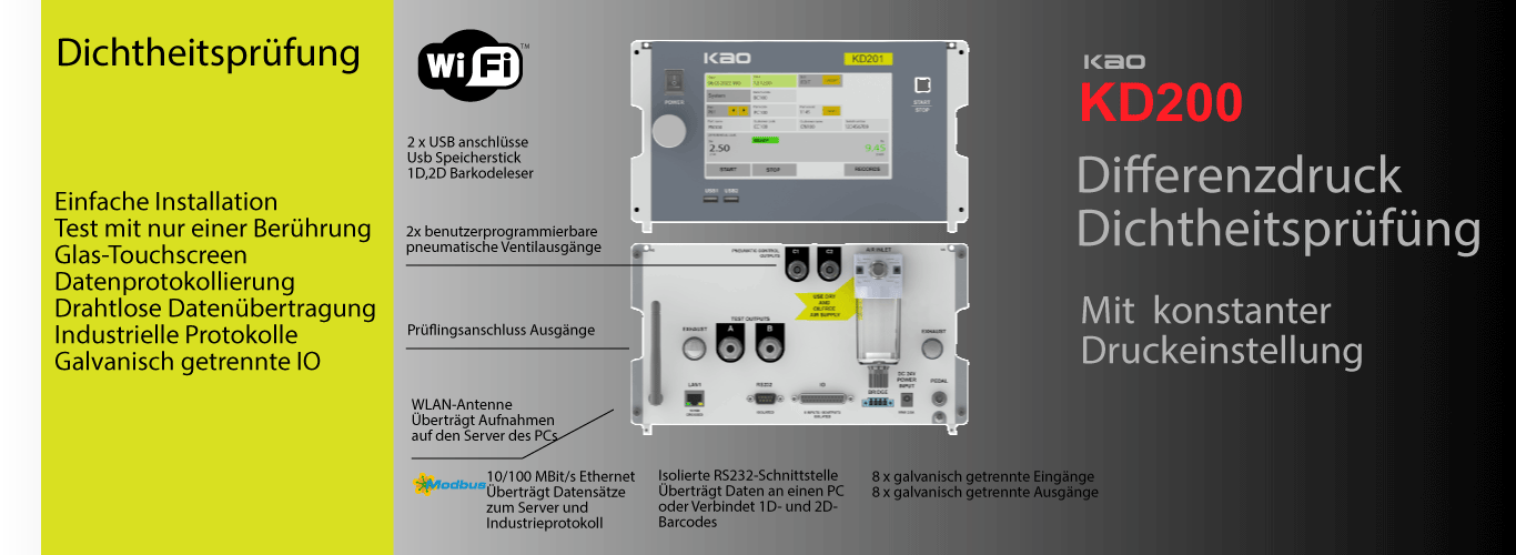 2 x USB 1 x RS232 1 x Ethernet-Anschluss